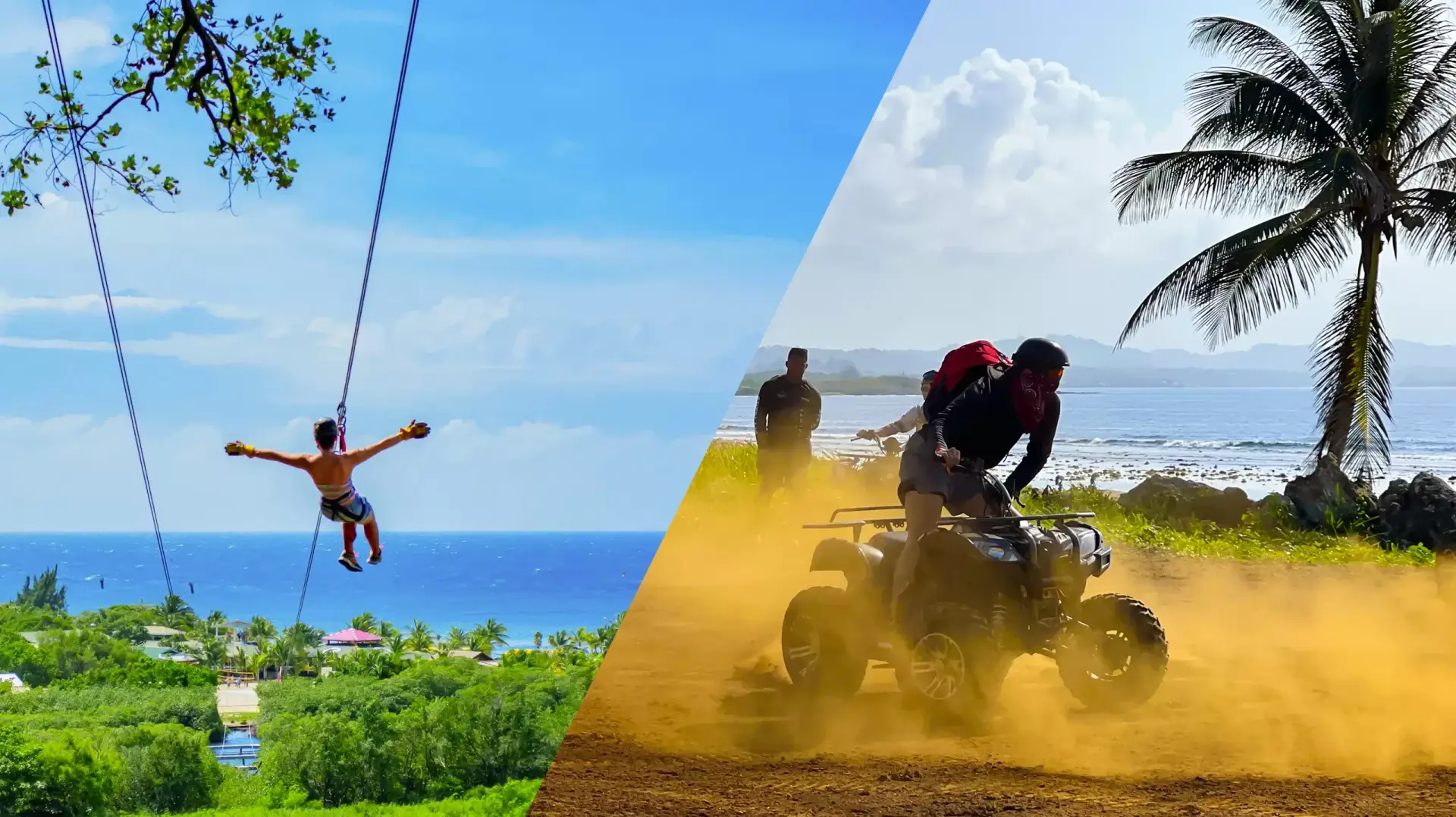 Dive into the ultimate combo thrill of land and air, by conquering epic island trails on an ATV, and soar above Roatan’s tropical foliage on the zip line.